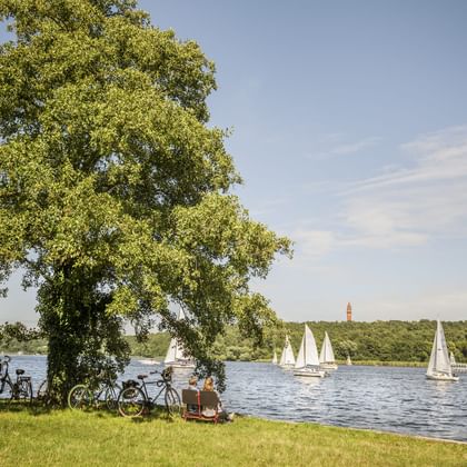 Am Morgen radeln Sie durch den Spandauer Forst, ehemals DDR- Sperrgebiet, dessen Mischwald durch seine Artenvielfalt besticht und der im Jahr 2000 zum "Naturschutzgebiet europäischer Bedeutung" erklärt wurde. Freuen Sie sich über die schöne Radstrecke entlang des fast zugewachsenen Nieder-Neuendorfer Kanals. Hier lohnt ein Abstecher zu den tausendjährigen Eichen. Staunen Sie über diese Giganten: 7 Eichen, 25 m hoch mit einem Umfang von 3,87m bis 6,15m. Vorbei am Laßzinsee, ein kleines Eldorado für Wasser- und Sumpfvögel radeln Sie zum Havelufer, in deren Mitte die ehemalige Grenze verlief. Legen Sie eine lohnenswerte Pause am ehemaligen Grenzturm Nieder Neuendorf ein (erbaut 1987), der restauriert wurde und unter Denkmalschutz steht. Heute beherbergt er ein kleines Museum zur Teilung Deutschlands und zu den Grenzanlagen. Zur DDR- Zeit diente er zur Überwachung dieses Grenzabschnitts und war zugleich Führungsstelle für 18 weitere Grenzwachtürme. In den 4 Geschossen waren einige Wirtschaftsräume, eine Arrestzelle, der Aufenthaltsraum der Grenzsoldaten und die Führungsstelle eingerichtet, in der stets mindestens zwei Grenzsoldaten Wachdienst halten mussten. Die letzten Kilometer entlang der Stolper Heide sind jetzt schnell geradelt, so dass Sie in Hohen Neuendorf entspannt einen schönen Radeltag ausklingen lassen können.
