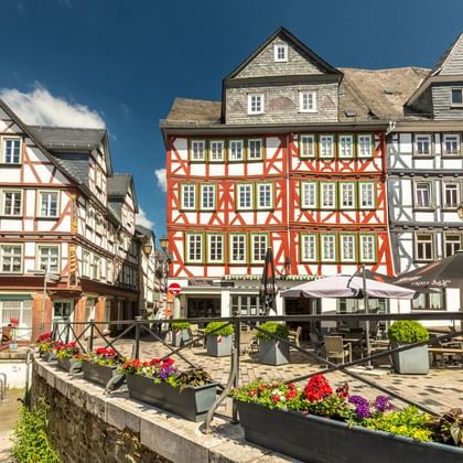 Freuen Sie sich auf den schönen Lahn-Radweg, der durch das weite Lahntal vorbei an idyllisch gelegenen Badeweihern bis Wetzlar führt. Erkunden Sie Wetzlars Altstadt und den interessanten Dom bei einem Spaziergang am Nachmittag. Bummeln Sie über den mittelalterlichen Marktplatz, entdecken Sie steile Treppchen, enge Gassen und romantische Winkel. Die moderne Seite Wetzlars erleben Sie auf dem Optikparcours. Hier entdecken Sie Phänomene der Optik, wie einen großen Brillanten aus optischem Glas, der funkelnd das Licht zurückwirft oder ein Kaleidoskop mit unendlichen Spiegelungen.