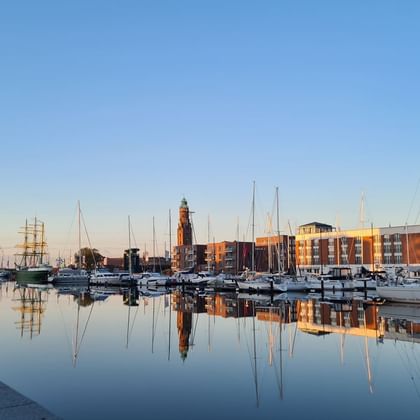 Als die Weser im 19. Jahrhundert versandete, blühten in Brake die Geschäfte. Schiffe aus aller Welt löschten hier ihre Fracht, weil ihnen zur weiteren Fahrt nach Bremen die "handbreit" Wasser unterm Kiel fehlte. So hat Brake noch heute eine maritime Vergangenheit. Besuchen Sie das das Schifffahrtsmuseum im Telegraphenturm. Anhand von Schiffsmodellen, nautischen Instrumenten und Werkzeugen der Segelmacher und Schiffsbauer erfahren Sie mehr über die Schifffahrtsgeschichte der Unterweser. Im Schutze des Deiches rollen Sie weiter Richtung Norden und genießen frischen Wind, Salzgeruch in der Nase und das Geschrei der Möwen. In Bremerhaven lohnt ein Besuch im "Schaufenster Fischereihafen", ein Kultur- und Kommunikationszentrum mit kleinen Geschäften, Kunsthandwerk, Restaurants und Seefischkochstudio.
