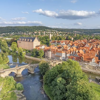 Reisen Sie rechtzeitig an, um die über 700 Fachwerkhäuser und das Weserrenaissance-Rathaus bestaunen zu können.
