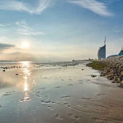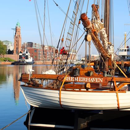 In Bremen muß Ihre schöne Fahrradreise noch lange nicht zu Ende sein. Auf dem Weg nach Bremerhaven gibt es noch Spannendes zu erleben. In Brake ist das Schifffahrtsmuseum im Telegraphenturm ein Muss. Anhand von Schiffsmodellen, nautischen Instrumenten und Werkzeugen der Segelmacher und Schiffsbauer erfahren Sie mehr über die Schifffahrtsgeschichte der Unterweser. Im Schutze des Deiches rollen Sie weiter Richtung Norden. Ein frischer Wind, Salzgeruch in der Luft und ganz viel Meer und Möwen zeigen Ihnen, daß Sie an der Küste sind. In Bremerhaven lohnt ein Besuch im "Schaufenster Fischereihafen", ein Kultur- und Kommunikationszentrum mit kleinen Geschäften, Kunsthandwerk, Restaurants und Seefischkochstudio.