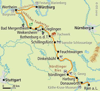 Below you will find specific information about cycling on the Romantic Road from Würzburg to Donauwörth. If you have any further questions about this trip, just give us a call: Tel .: 06421 - 886890.